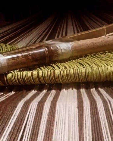 Así se teje un poncho en el campo, en Villa Lía, San Antonio de Areco... noche y día, largas horas de trabajo sobre el telar. Luego, los frutos. Ponchos tejidos en telar criollo, pura lana de oveja, íntegramente teñidos con tintes naturales de nuestra flora local.