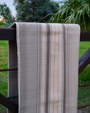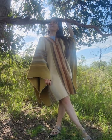 Poncho tejido en telar criollo, con tintes naturales (acacio negro, eucalipto medicinal y manzanilla), 100% lana. Hoy, es una de las piezas artesanales puestas en valor por la UNESCO en el catálogo 2025 de la Fundación Escala Humana. El orgullo de sumar con mi trabajo al patrimonio material e inmaterial de mi pueblo. Expuesto en la Muestra internacional del Museo del Cabildo en Montevideo, Uruguay.