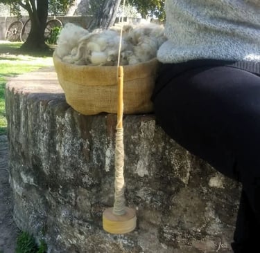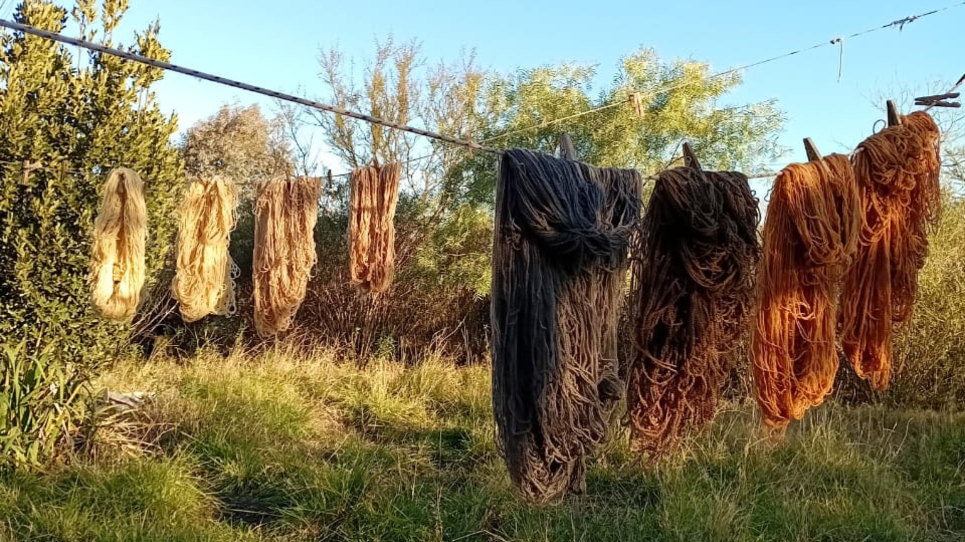 Partiendo del conocimiento y preparación del material teñimos las fibras con tintes naturales locales, aprovechando los recursos de la zona (vellones de lana de oveja) para hilarlo artesanalmente en huso y rueca, y agregarle valor a partir del teñido con tintes naturales de flora nativa y asilvestrada local. A su vez, reconoceremos las características presentes en un textil natural, sustentable y biodegradable en hilados comerciales.